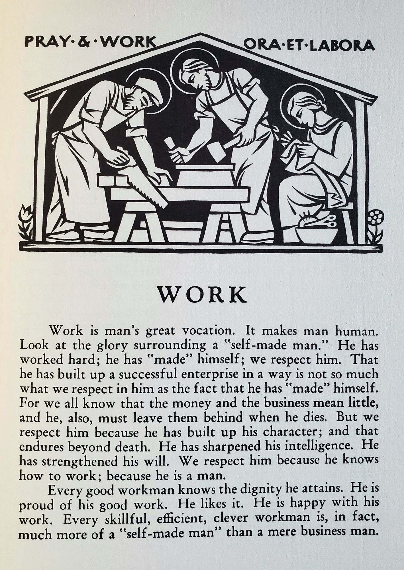 Ade Bethune lived from 1914 to 2002. She became the first contributor of art to the Catholic Worker newspaper. A great biography of her is “Proud Donkey of Schaerbeek” by Judith Stoughton. She had a distinctive style and often portrayed saints as workers and laborers in contemporary clothing and situations. Her archives are located at St. Catherine University in Saint Paul, Minnesota.