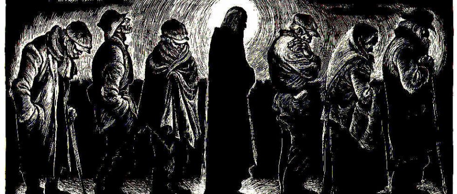 Fritz Eichenberg was a Quaker wood engraver and who contributed many illustrations to the Catholic Worker newspaper, including his “Christ of the breadlines” at the top of this page. He lived from 1901 to 1990.